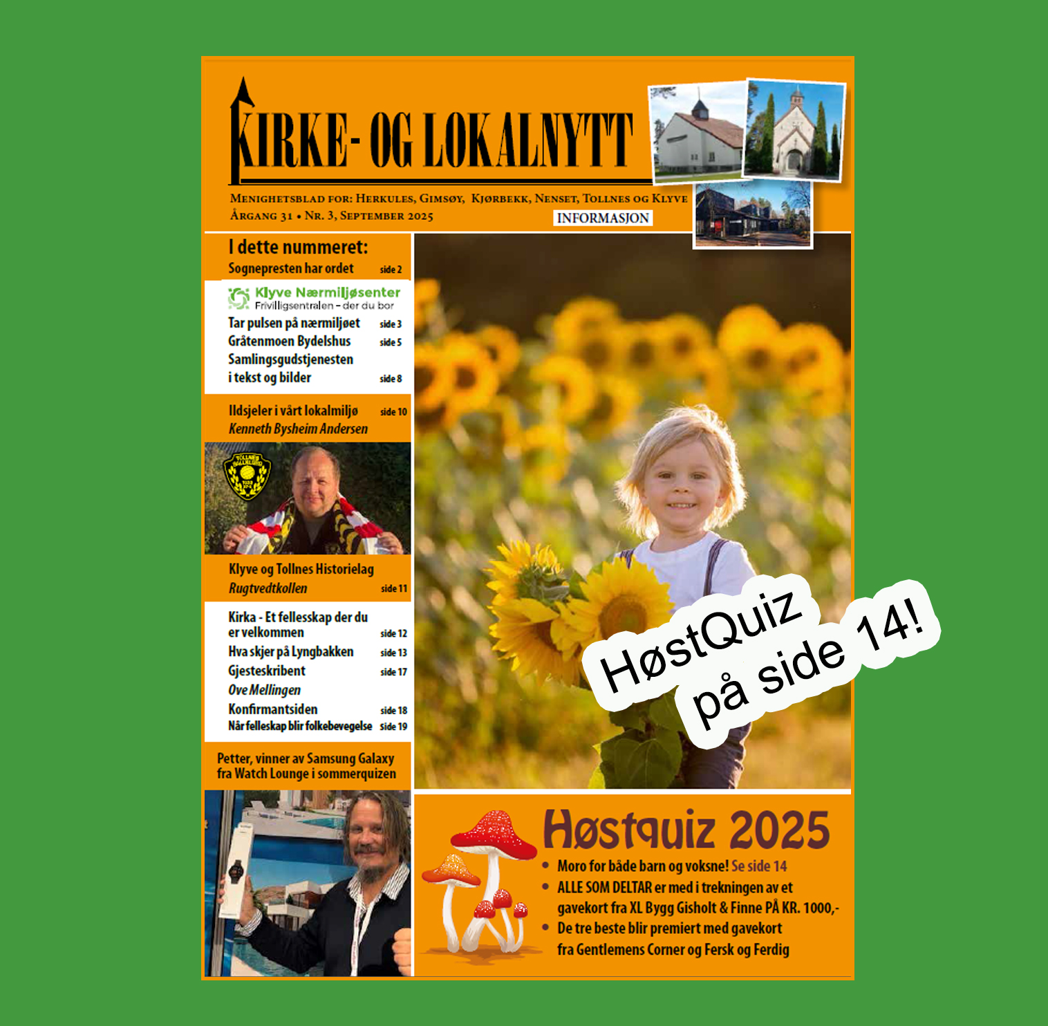 Her finner du siste nummer av Kirke- og Lokalnytt.